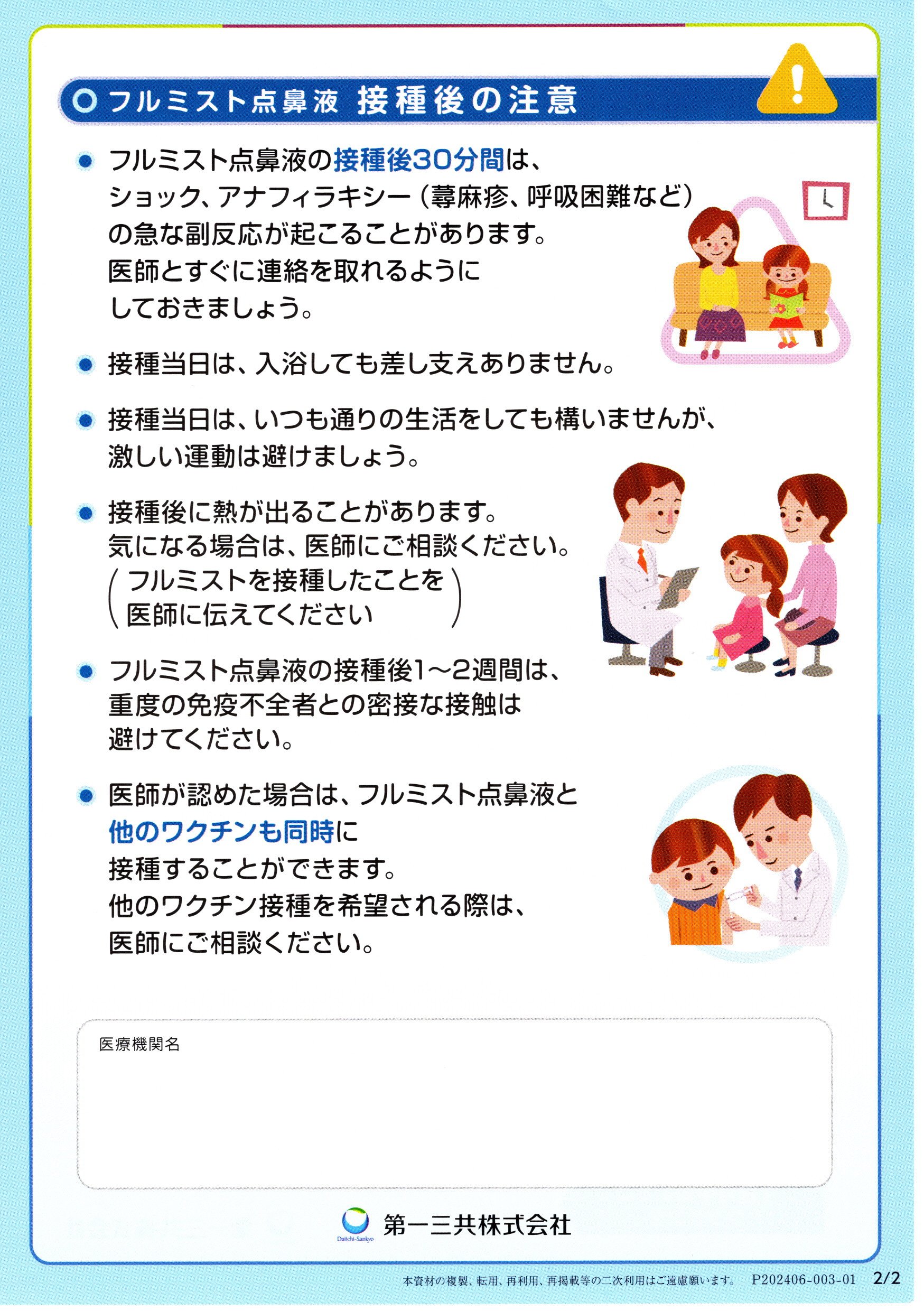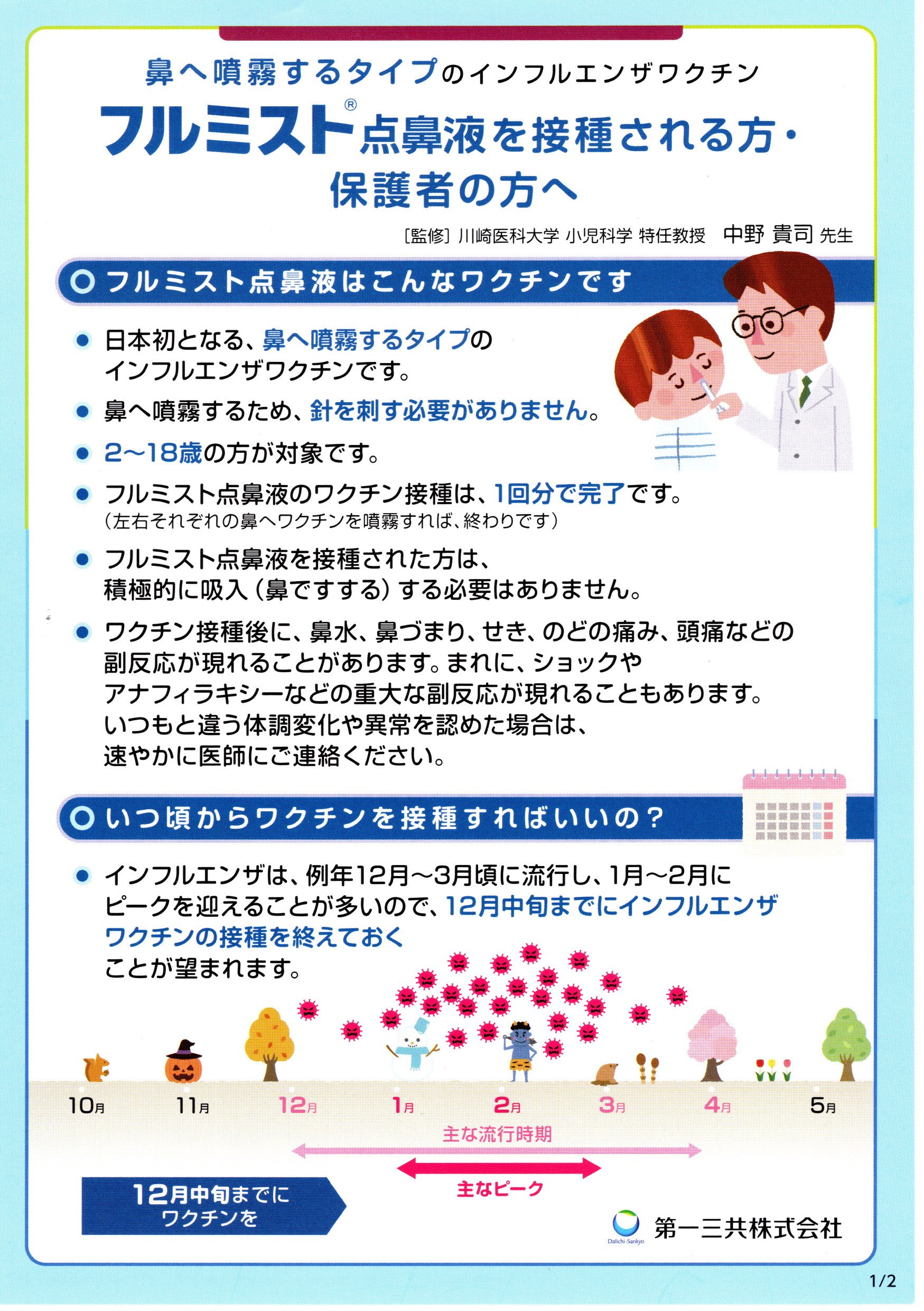 - 2025.11.09 点鼻薬のインフルエンザワクチン予約受付中です。